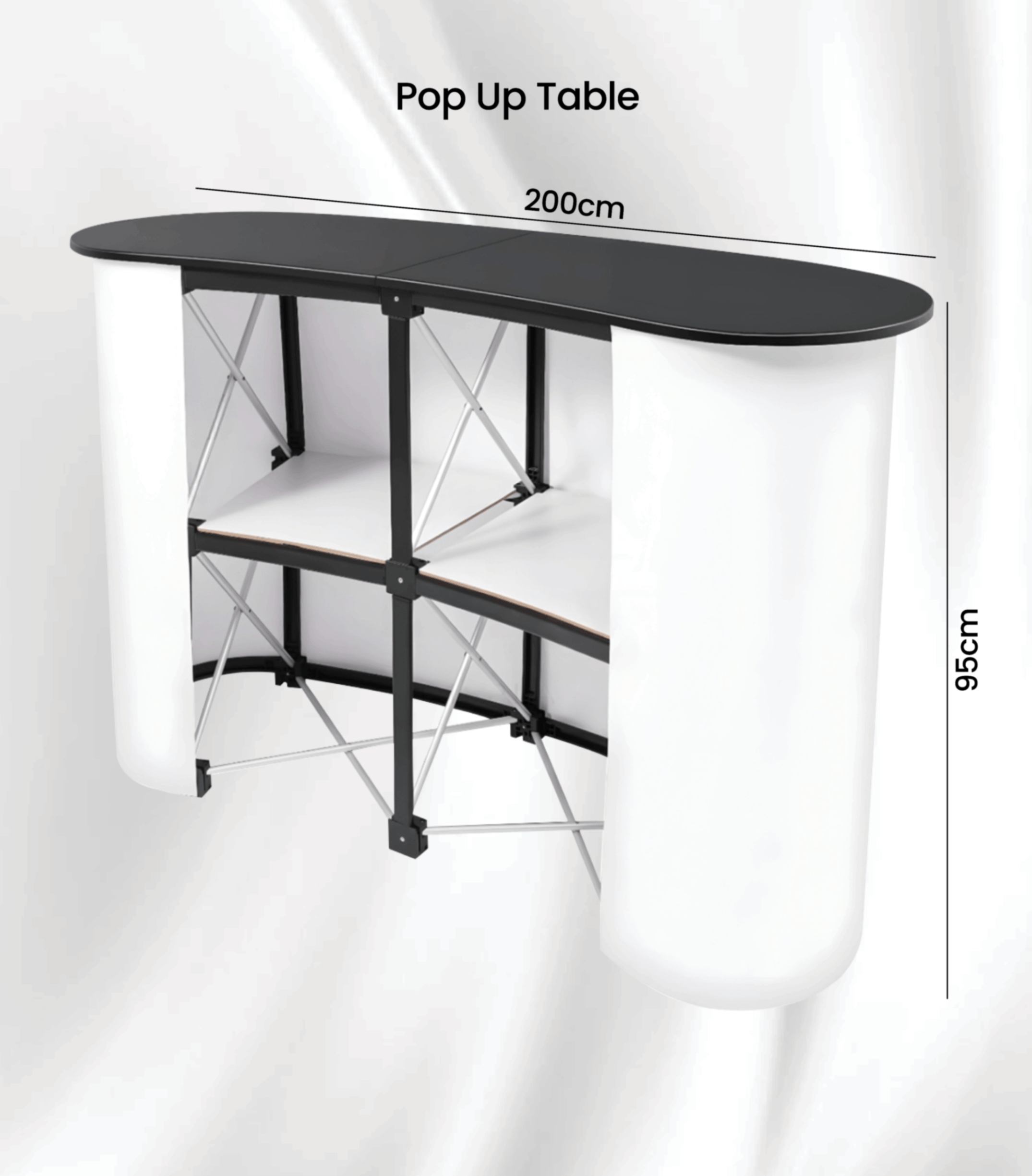 The Pop Up Table (Curve) is a stylish and practical promotional counter designed for exhibitions, retail promotions, events, and brand activations. Featuring a strong folding aluminium frame with a curved tabletop design, it provides a professional front-desk look while remaining lightweight and easy to carry.